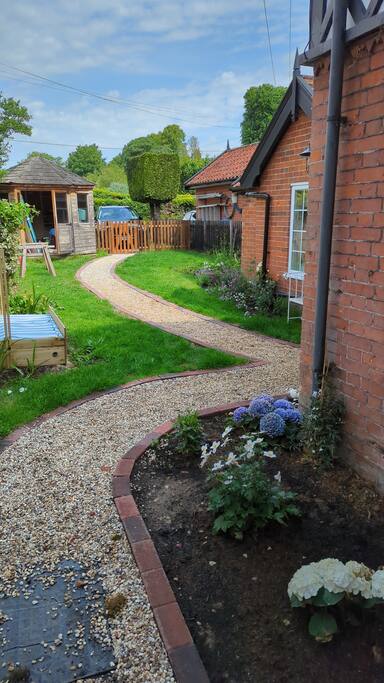 You’ll have your own private parking space right at the cottage. The lane is quite narrow, so it’s easiest to reverse out when leaving. If you’re bringing more than one car or a larger vehicle, there’s free parking just a short stroll away on Framlingham Road. Inside, please note the staircase is steep and narrow — it adds to the cottage’s character, but do take care. If stairs aren’t for you, the cosy ground-floor ensuite bedroom is a great option. We love welcoming dogs, and they’ll be safe and happy in the enclosed front garden. The back garden leads onto the lane and a neighbour’s paddock with horses, so it’s best kept as a quiet space.